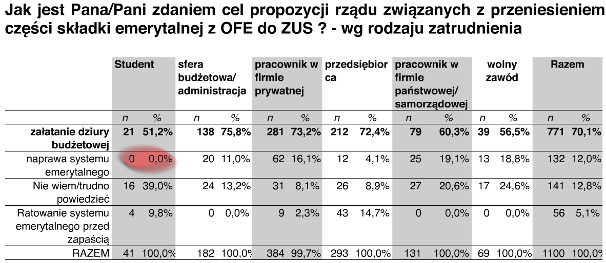 Oskar/Leszek w kategorii „o co na pewno nie chodzi w zmianach w składce OFE” wędruje do studentów.